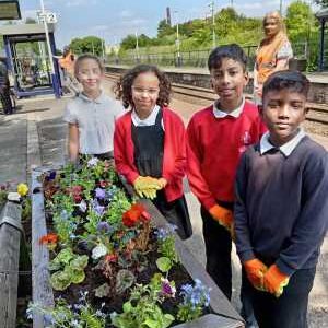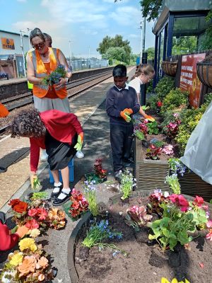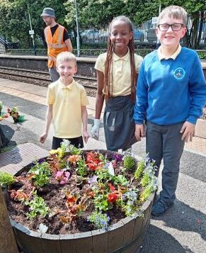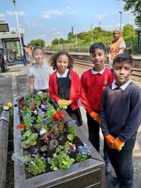 Councillor – Billy Sheerin was delighted to be joined by pupils and staff from Castleton Primary School, St John Thornham School, Zen Internet, and Rochdale Council’s Environmental Team to get their hands dirty and bring a bit more colour to the community at Castleton Train Station.